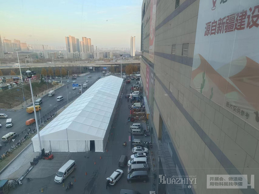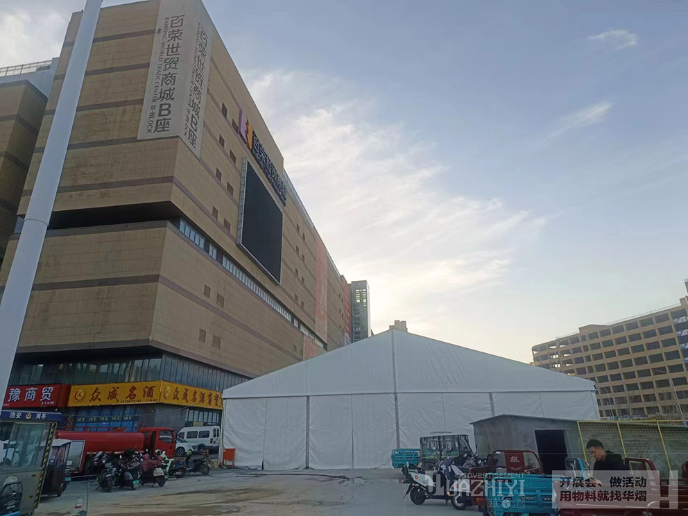 鄭州百榮年貨節活動篷房租賃使用范圍,根據文中的配圖可以看到百榮年貨節篷房已經搭建完畢,人字形拱頂白色篷布,很適合冬天的氛圍。篷內的空間是可以充分利用的,下面可以擺放攤位和桌椅等各類物品。室內空間有限,通過搭建篷房又在外圍廣場上搭建起一個空間,年貨節結束后立即拆除,不會影響地面,不會污染環境,是一個經濟靈活的好選擇!在市面上選擇時,我們一定要擦亮雙眼,做好考察再確定。鄭州華之熠公司建廠十余年,擁有兩萬多平米各種跨度的歐式篷房,配套設備齊全,種類豐富,如有需要歡迎隨時致電鄭州華之熠廣告公司。