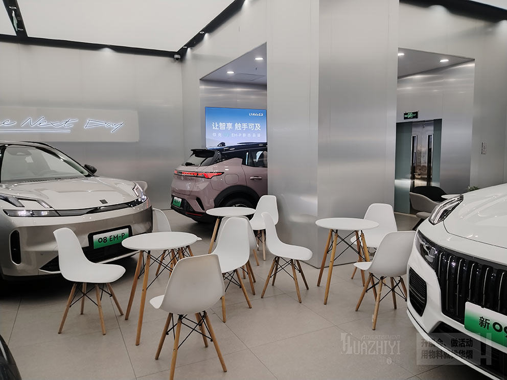 鄭州桌椅出租廠家布置汽車門店活動桌椅現場