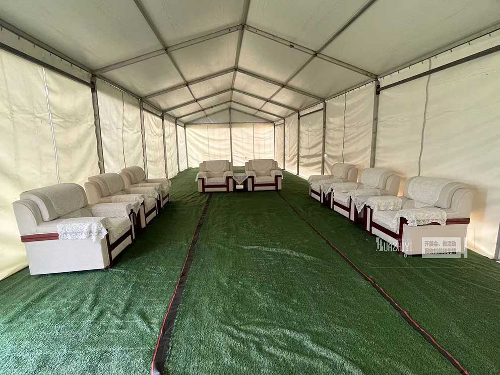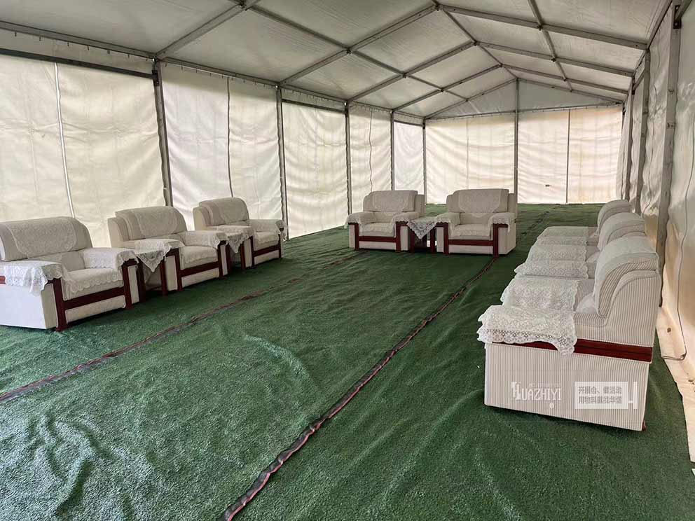 鄭州篷房出租搭建室外篷房,同時還提供布藝沙發租賃。無論是浪漫的戶外婚禮,還是隆重的企業年會,亦或是充滿創意的展覽活動,鄭州華熠篷房出租公司都能以專業的服務和優質的產品,為活動增添一抹亮色。不僅提供了遮風擋雨的室外空間,更以舒適的布藝沙發,讓每一位參與者都能享受到賓至如歸的舒適體驗。