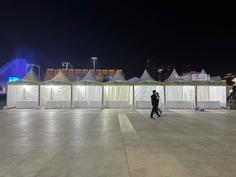 值得一提的是,這些篷房的搭建不僅速度快、效率高,而且在設計上充分考慮了環保與美觀的結合。采用的材料既耐用又環保,能夠很好地融入鄉村的自然環境中,為旅游節增添了一抹亮麗的風景線。