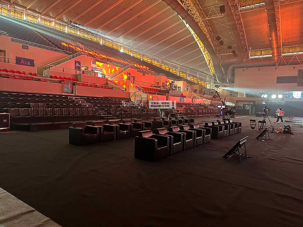 場內貴賓沙發則是觀賽的“舒適結界”。許昌防爆欄沙發租賃的黑色皮質沙發,舒適感極強,久坐觀賽也不會疲憊。從場外到場內,這兩種物料如同賽事的“隱形管家”。防爆欄用剛性結構劃分出安全邊界,讓洶涌人潮各歸其位;黑色皮質沙發則以軟性關懷包裹著參與者的疲憊,讓緊張的競技氛圍里多了份松弛感。