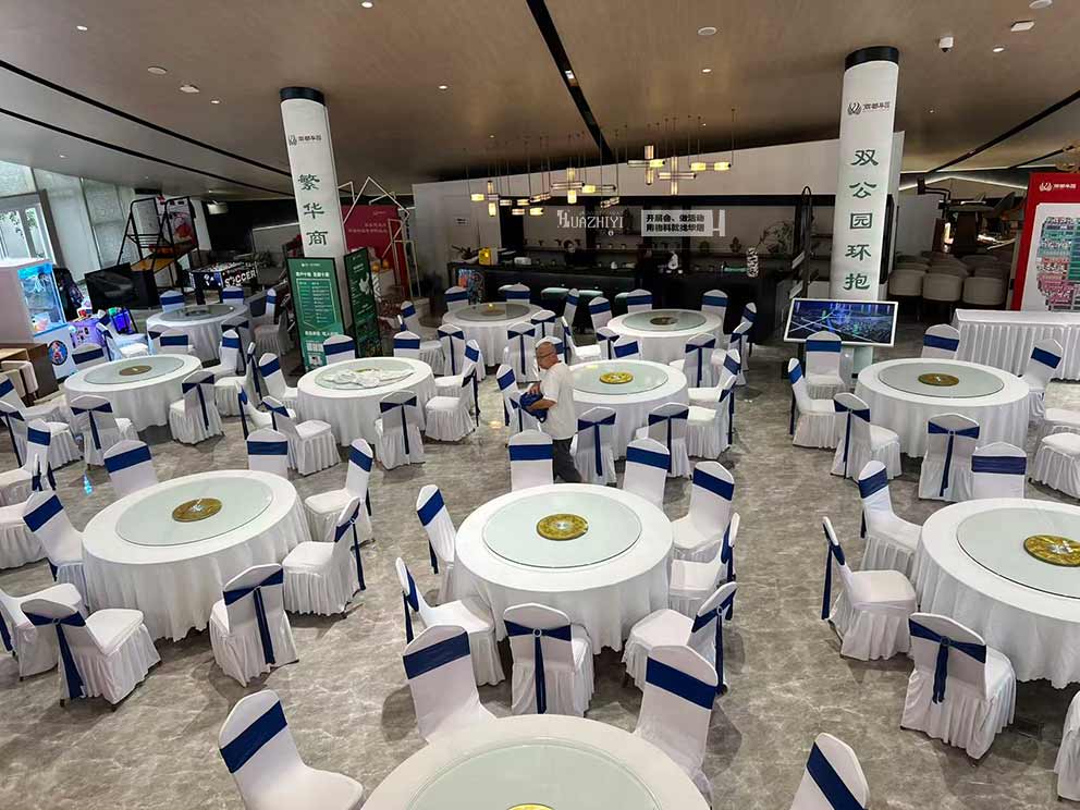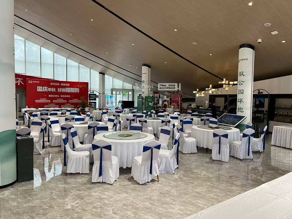開封桌椅租賃以大圓桌(帶轉(zhuǎn)盤)與白色貴賓椅為核心物料,為2025商都阜園購房活動(dòng)打造出兼具實(shí)用性與氛圍感的場地空間。