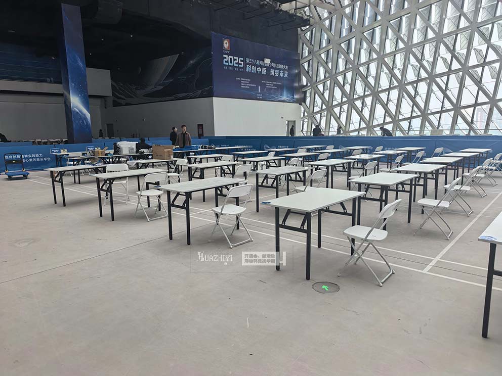 開封桌椅出租精準把握第二屆河南省青少年科技運動會的核心需求,以折疊椅、長條桌為核心布場物料,通過科學的空間規劃與細節考量,為運動會打造出兼具實用體驗與適配性的場地環境,助力青少年在科技競技中專注發揮、展現風采。