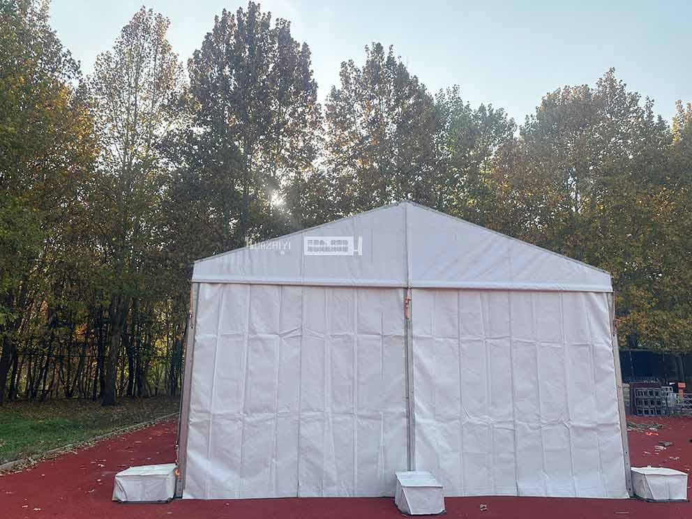 臨汾長治篷房出租為競賽搭建的白色人字形篷房,是場地的核心功能區。篷房選用高強度鋁合金架與高密度PVC篷布,既具備優良的防風防雨性能,又能保證內部空間的開闊通透。無立柱設計讓篷房內利用率提升至90%以上。