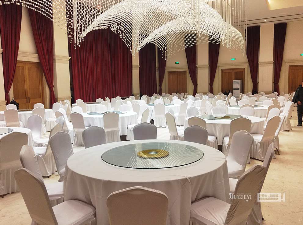 開封桌椅出租為九紫星畔產業園選用的大圓桌,是空間功能的核心載體。桌面采用實木基材搭配鋼化玻璃轉盤,玻璃轉盤邊緣經過圓弧打磨處理,既保證使用安全,又增添通透質感,方便參會者輕松取用餐食或交流物料;桌面鋪設純白色桌布,桌布材質選用防污易清潔的聚酯纖維,潔白平整的外觀與產業園現代簡約的裝修風格高度契合,同時能提升空間的明亮度與整潔感。大圓桌直徑根據場地需求靈活選擇,可容納8-12人圍坐,既適合小型商務洽談,也能滿足團隊會議需求。