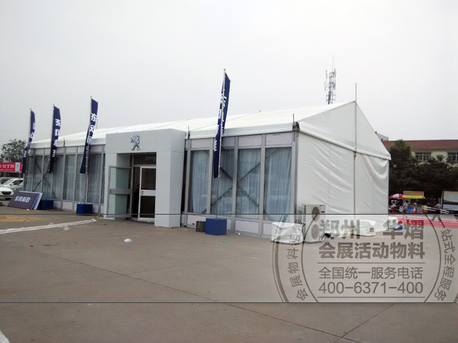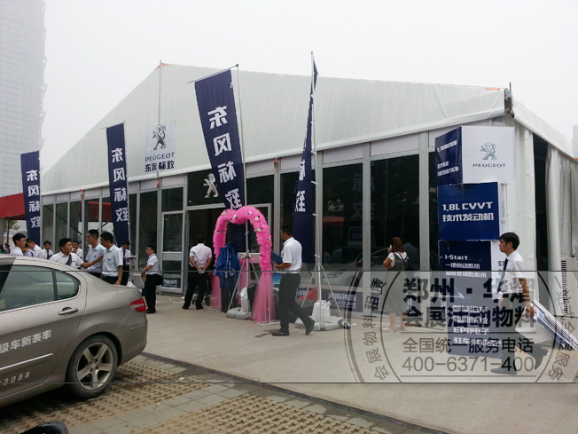 標志汽車2014年河南省省內巡展物料一站式供應,玻璃篷房、車展地臺、篷房帷幔、旋轉沙發椅等物料整體一站式服務。