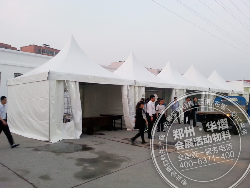 歐式尖頂篷房租賃,規格有5x5m,6x6m,另可定制多種規格。鄭州篷房租賃,鄭州華熠篷房。