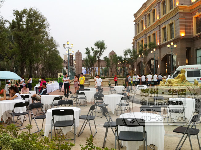 汽車品牌玻璃桌折疊椅租賃現場 鄭州玻璃桌租賃 鄭州折疊椅租賃