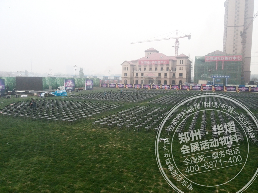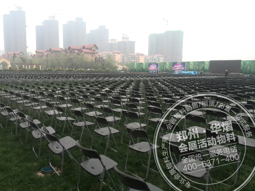 2015年張信哲安陽助力華強城,數千把折疊椅,具體有多少您可以仔細看一看。 鄭州折疊椅租賃,鐵馬護欄租賃