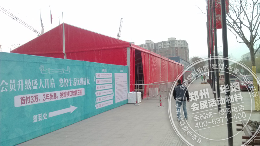 2015龍湖悅府海棠樓盤簽約會,鄭州華熠篷房出租,配套物料桌椅,小型帳篷,鐵馬護欄等。