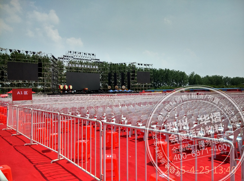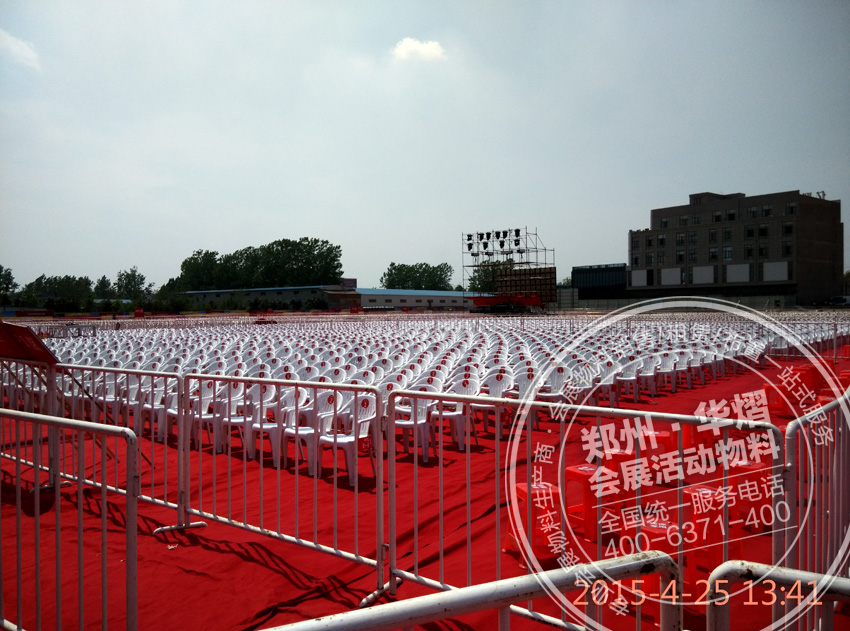 2015年4月25日葉縣億聯建材家居五金城愛心晚會,華熠為其提供近萬把沙灘椅,數百把貴賓椅,一千多米鐵馬護欄。華熠專業為各類大中型活動提供物料租賃服務,歡迎廣大客戶前來考察。