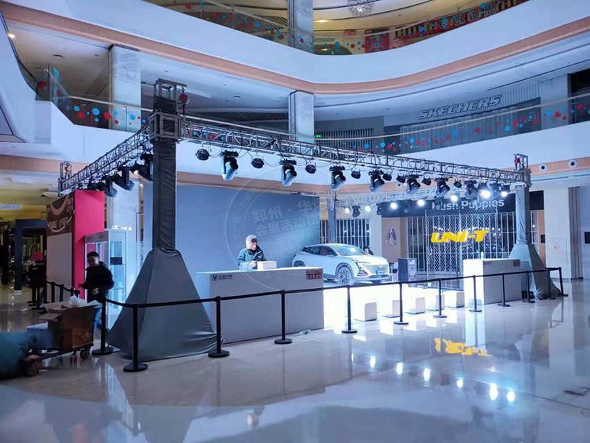 作用。而此次在鄭州錦藝城長(zhǎng)安車展活動(dòng)中,華熠物料租賃公司為其提供了舞臺(tái)桁架租賃服務(wù)。