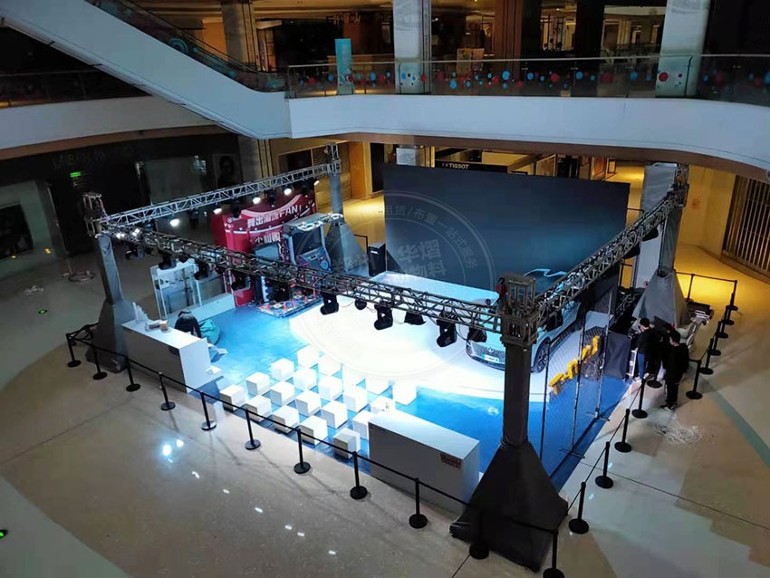 藝城商場(chǎng)里為其搭建了舞臺(tái)桁架。