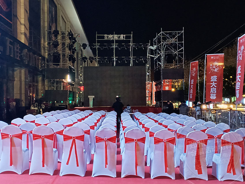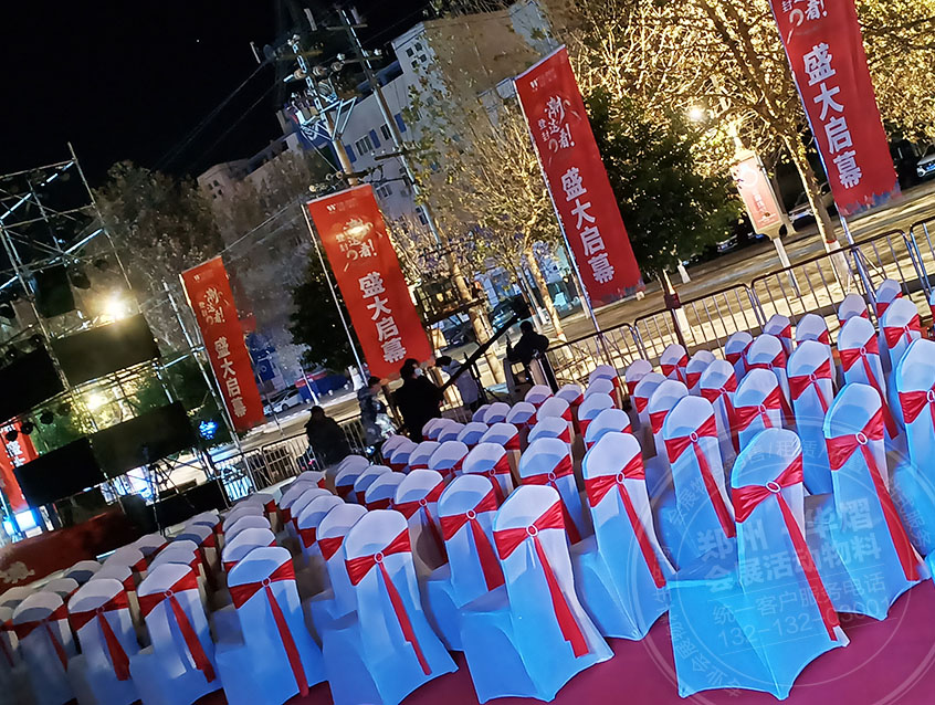 此次鄭州登封萬佳活動華熠選擇白色貴賓椅和紅色蝴蝶結作為點綴,使活動現(xiàn)場