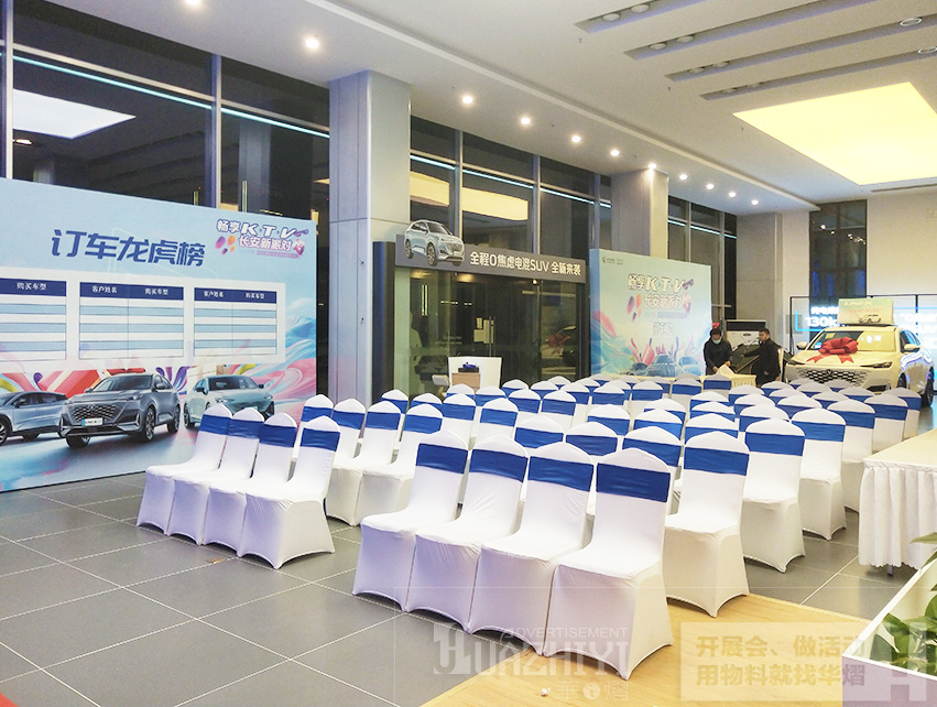 本次活動長安汽車會場內部準備了桌椅以供嘉賓們休息,簽到處的背景桁架更是突出了活動主題,彰顯了活動的主題以及特色。高級的貴賓椅戴著藍色腰圍,給人一種滿滿的高級感。來參加活動的嘉賓們也可以得到更好的休息,認真的了解長安汽車。而此次活動的桌椅以及背景桁架都是由濮陽桌椅出租公司來提供的。