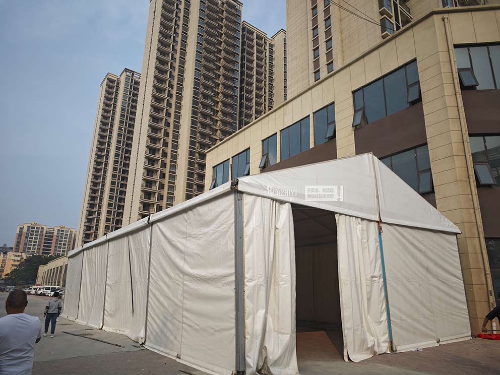 鄭州活動篷房租賃搭建龍湖特賣會篷房現場
