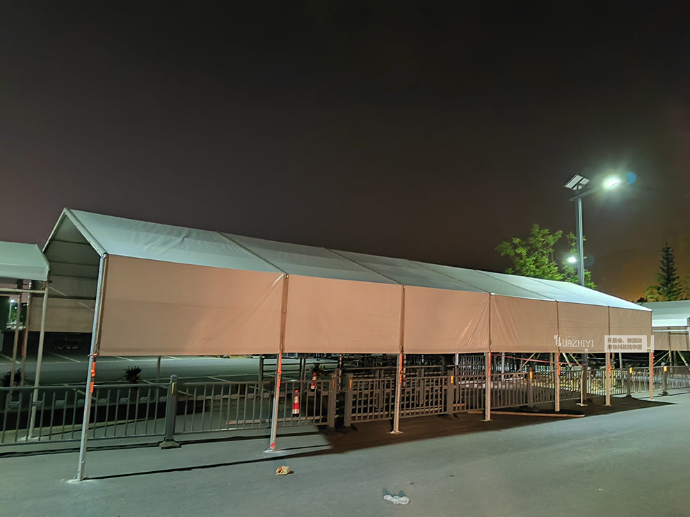 在篷房材料選擇上,華熠公司嚴格把關,采用高強度鋁合金框架,穩固耐用,能抵御一定程度的惡劣天氣;篷布則選用防水的優質材料,為安檢工作提供可靠的環境保障。搭建過程中,技術人員憑借精湛技藝與高效協作,嚴格按照標準流程操作,確保每一個連接點都牢固可靠,每一處細節都處理到位。