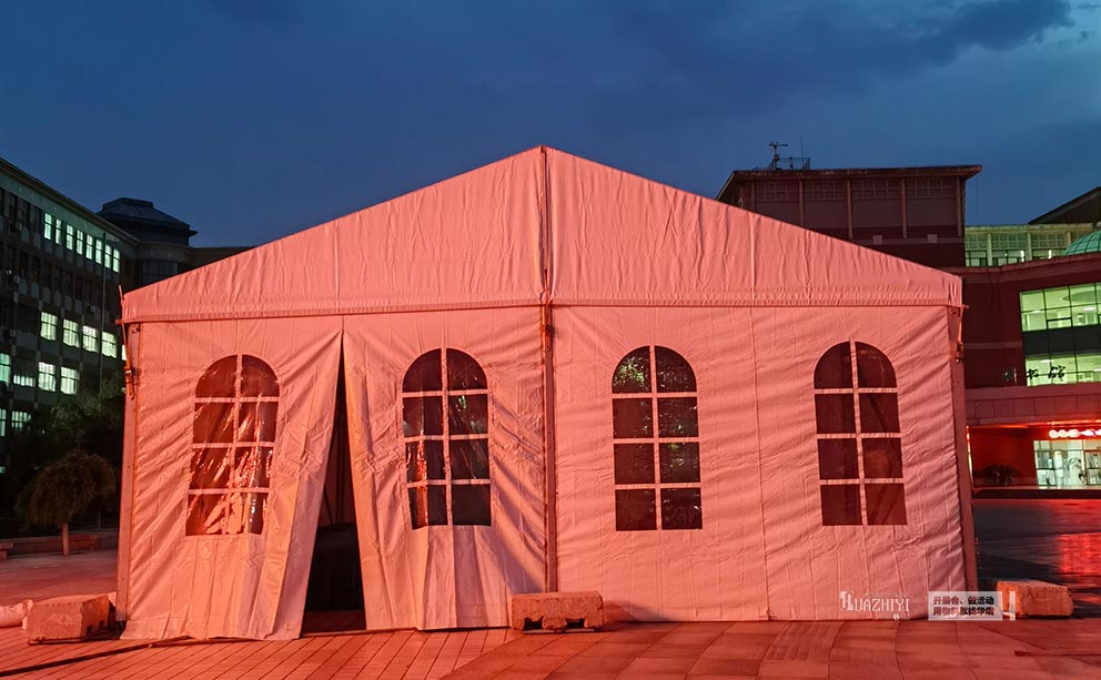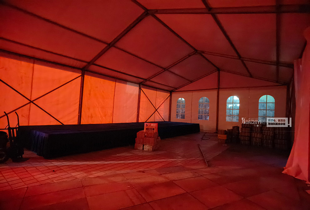 在搭建過程中,華熠篷房團隊嚴格遵循安全規范,從基礎固定到篷布安裝,全程采用標準化作業流程,僅用一天時間即完成全部搭建任務。