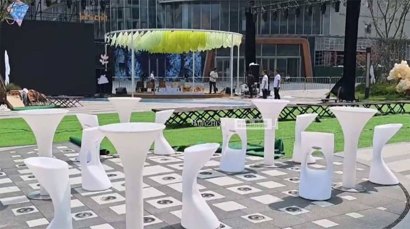鄭州華熠桌椅租賃公司的師傅們根據7-ELEVEN門前的空間,把發光桌椅擺成圓形。安裝時不用復雜接線,吧桌吧椅自帶可充電電池,按下底座的開關就能點亮,師傅們特意測試了亮度調節功能,確保光線既足夠亮眼又不刺眼,傍晚開燈時剛好能照亮周圍半米的范圍。到了晚上,這些發光桌椅將成為開業活動的“主角”。