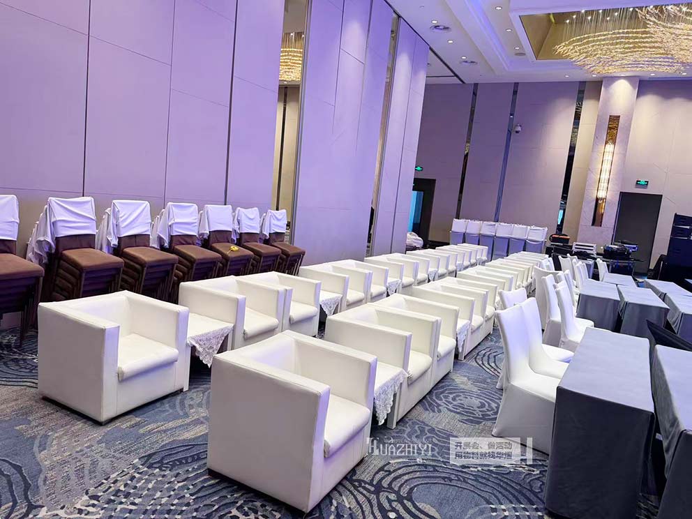 從質感物料的精準適配到專業細致的布置服務,洛陽沙發出租以匠心細節賦能高端場景。白色單人皮質沙發與茶幾的精妙搭配,讓希爾頓酒店論壇會既格調盡顯又暖意十足,既保障了嘉賓的舒適體驗,又烘托了高效交流的氛圍,成為洛陽高端商務活動場地布置的優選伙伴。